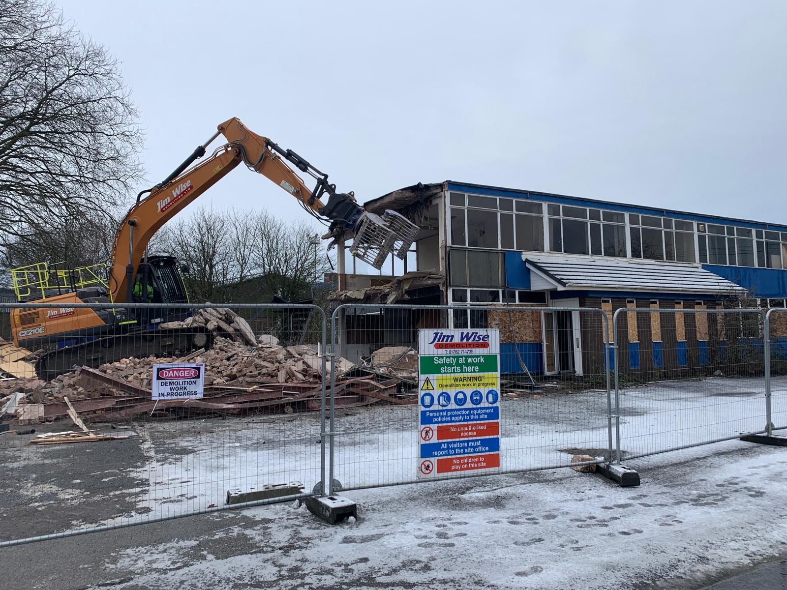 Jim Wise Demolition completed the demolition and strip out of the former Downward Plumb & Colclough site in Stoke-on-Trent. The historic industrial premises required full internal soft strip out prior to structural demolition, with asbestos survey and licensed removal carried out throughout. All buildings and structures across the site were demolished, with demolition arisings processed and removed via licensed waste carriers.