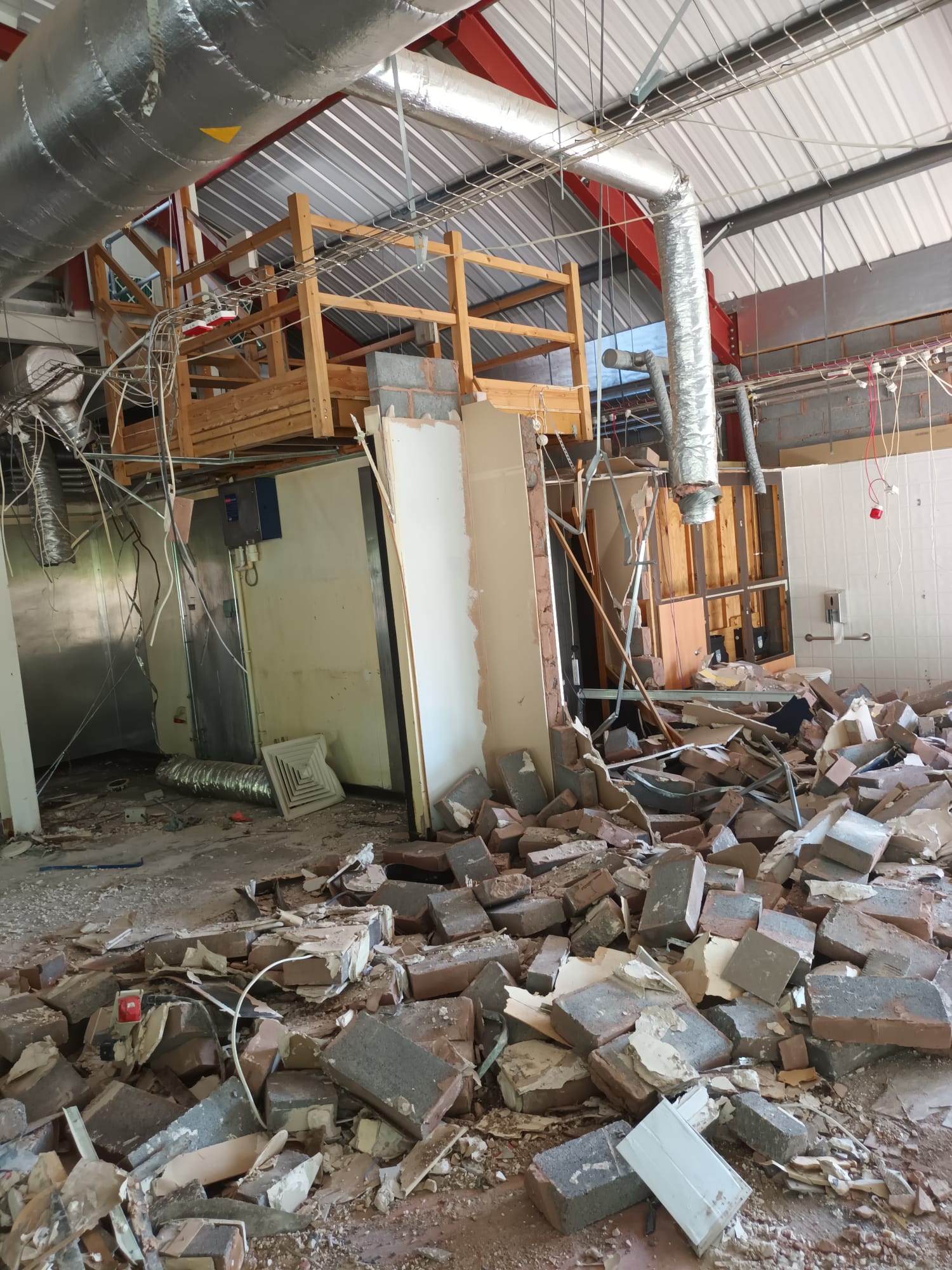 Jim Wise Demolition completed the full demolition of the former Lifestyle Centre in Stone, Staffordshire, clearing the site for redevelopment in this growing Staffordshire market town. The Stone town centre location required careful management of traffic, dust and noise to minimise disruption to the local community and neighbouring businesses throughout the programme. Asbestos survey and licensed removal was carried out, with all concrete arisings processed on-site through mobile crushing plant.