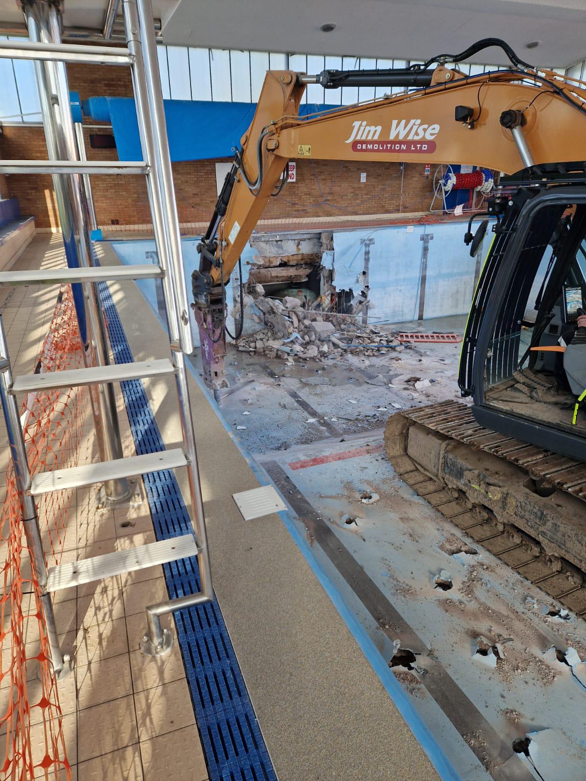 – The pool base slab was left in situ — only the perimeter and wall sections were broken